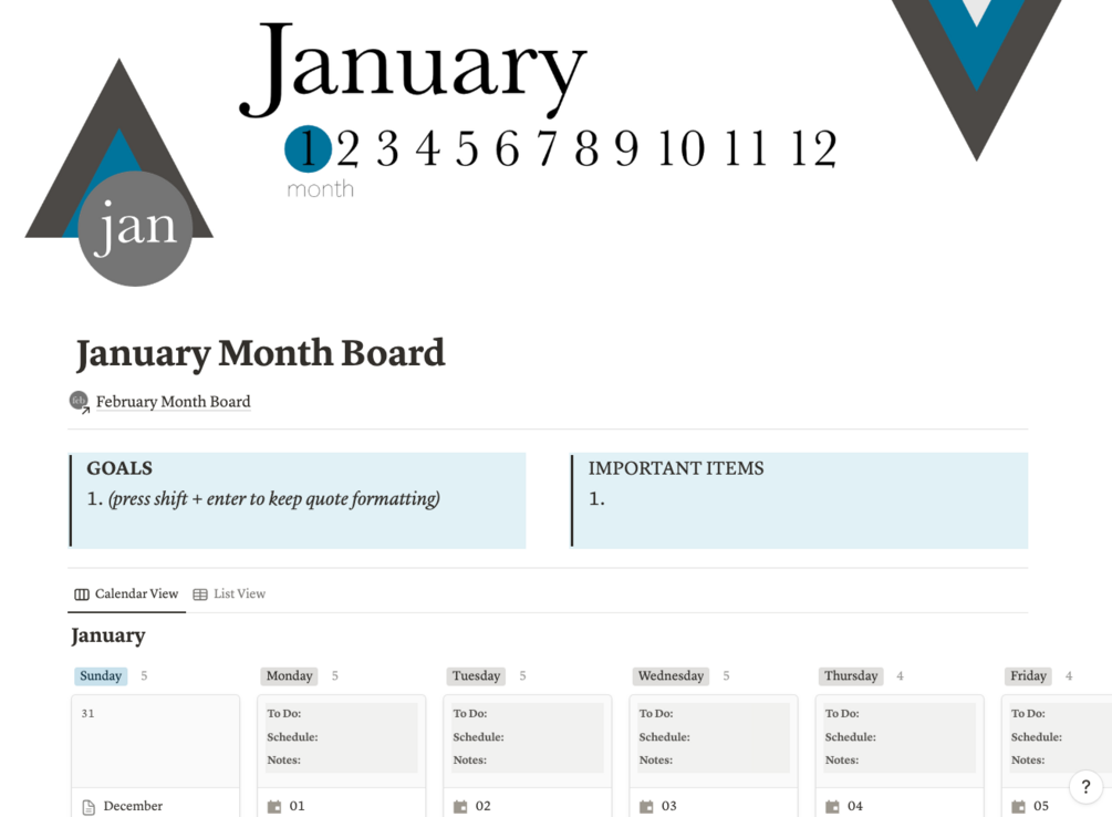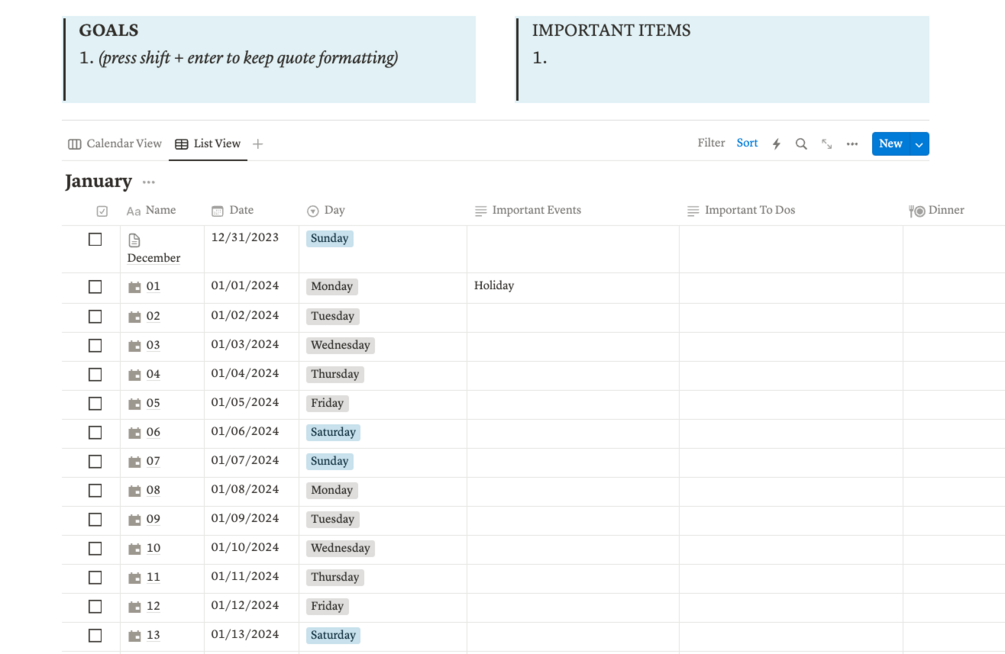 A complete 2024 Planner that included each month fulled dated and indexed with weekly planning templates, habit trackers, journal, and goal setting.